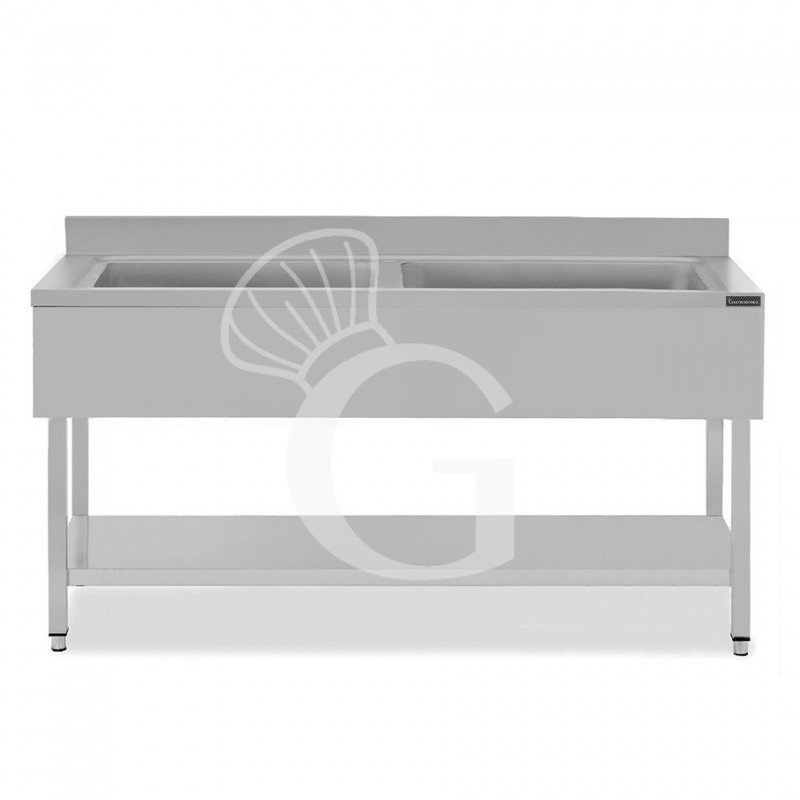Topf-Spültisch, Edelstahl, 2 Becken, Grundboden, Aufkantung, B 2000 mm x T 700 mm x H 950 mm